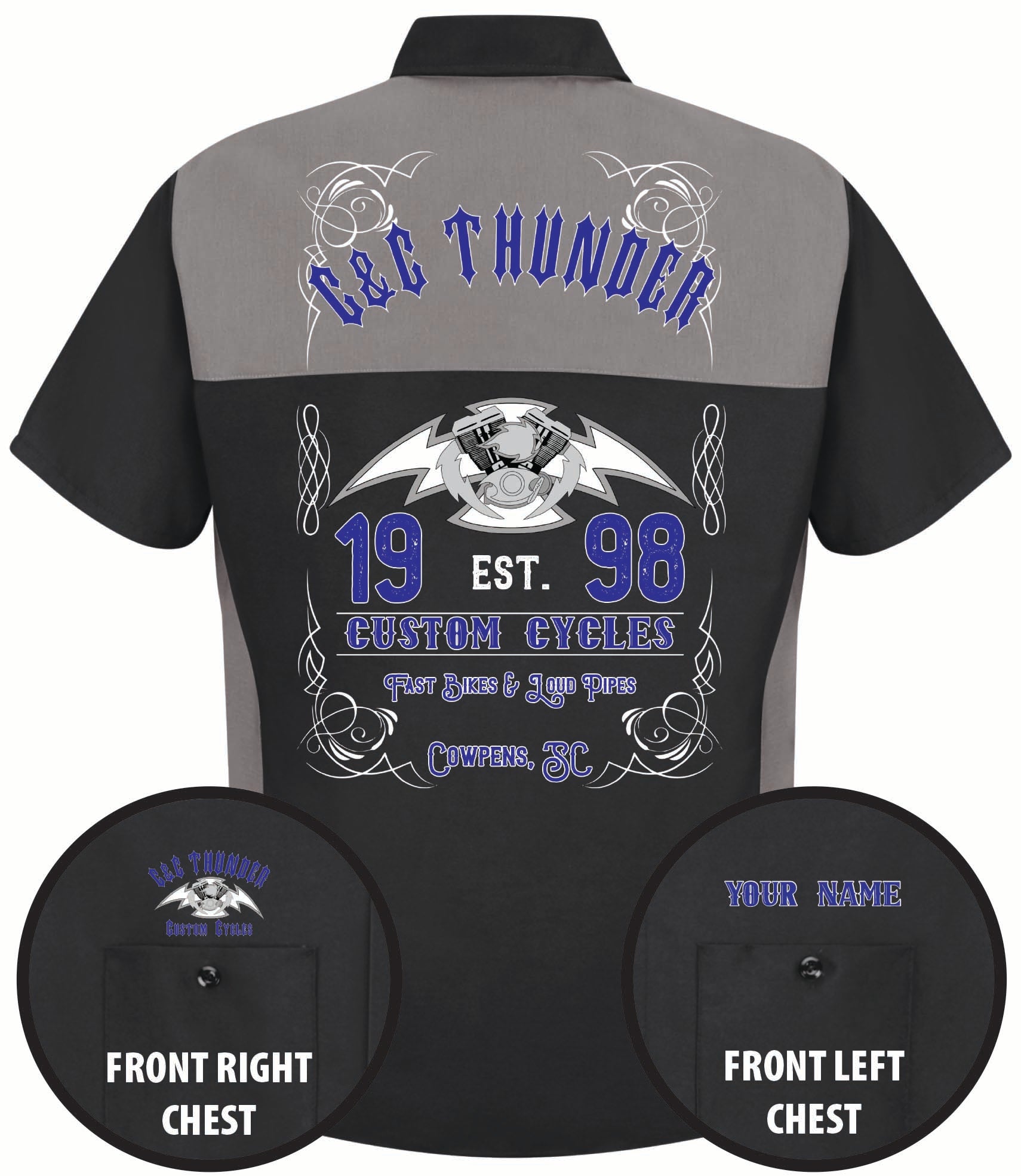 Please note- The shirt is customizable, to have your name added to the front left chest above the pocket please leave a note in the note section of the cart. Thanks.
